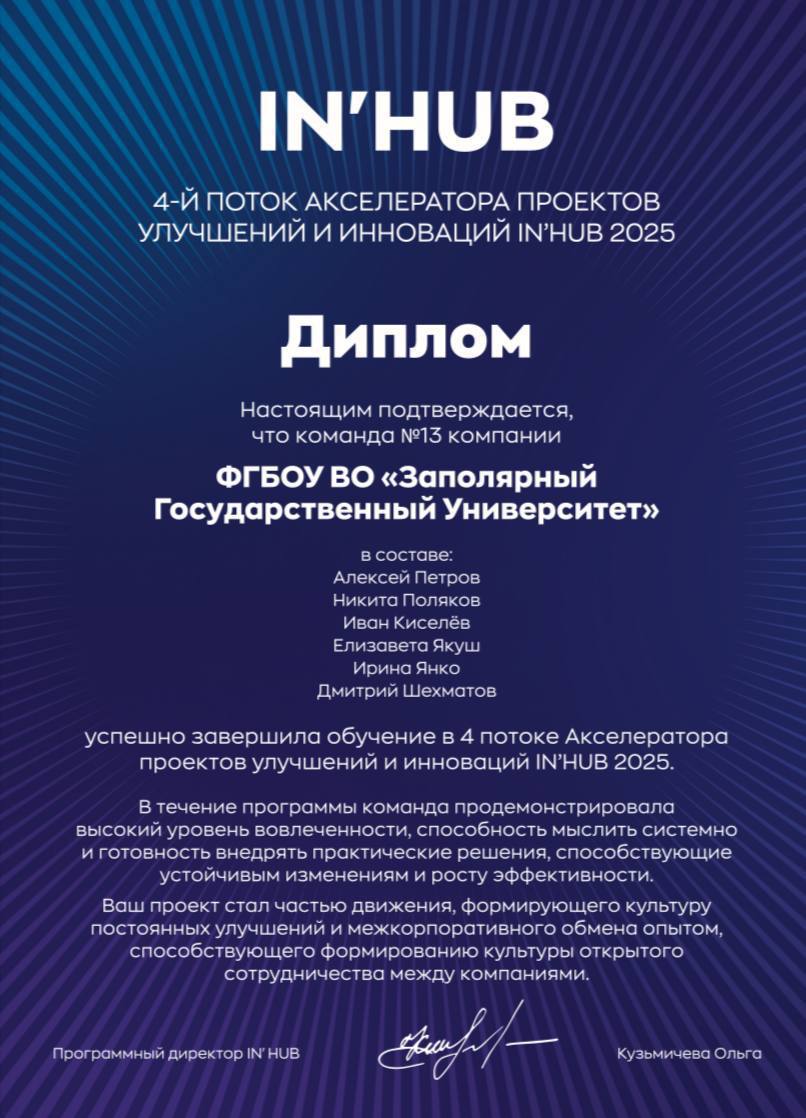 Участие студентов ЗГУ в конкурсе корпоративных проектов улучшений «Трансформация» IN’HUB вместе с гигантами производства — «Норникелем», АвтоВазом, Газпромом — подтверждает высокое качество их научных разработок и стремление к научно-технологическим открытиям!