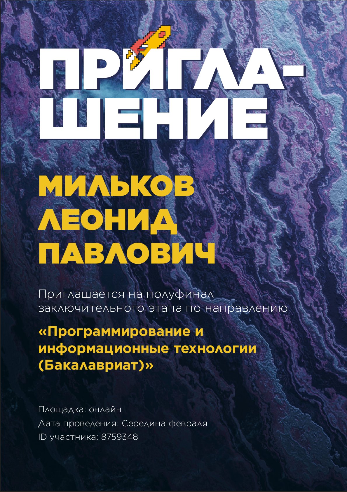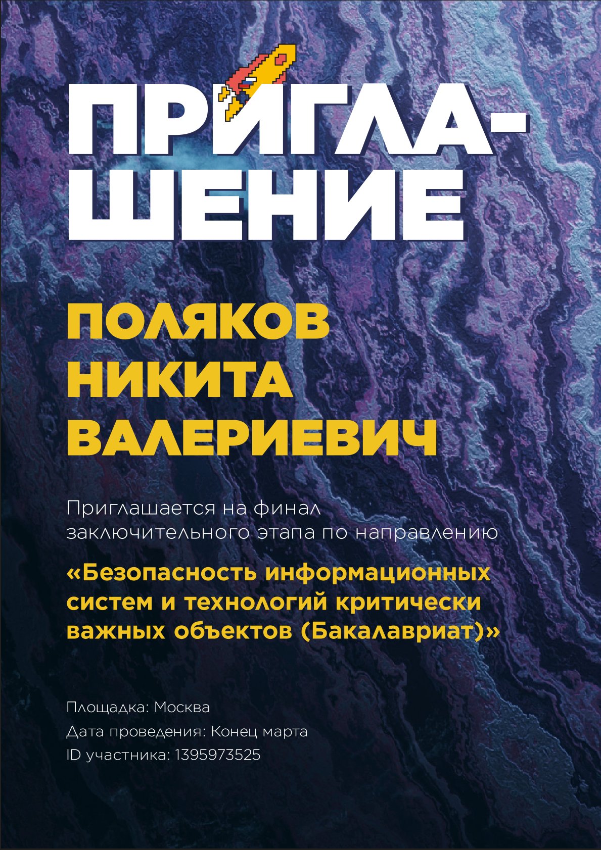Полуфиналы по «Программированию и ИТ» и «Бизнес-информатике» пройдут в онлайн-формате. А в конце марта Никита Поляков полетит в Москву. Там в очном формате пройдёт финал направления «Безопасность информационных систем и технологий критически важных объектов».